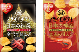 ▲湖池屋プライドポテト 日本の神業 金沢の甘えび 160円(税込)