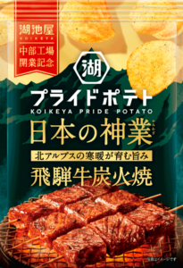 ▲湖池屋プライドポテト 日本の神業 飛騨牛炭火焼 160円(税込)