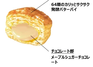 64層のカリッとサクサクのバターパイと、メープルチョコの組み合わせで、メープルバターサンドの味わいを表現しました。