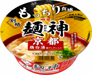 明星 別格麺神 京都鶏白湯はもっちりとした麺が特徴で非常に人気の高い商品です。麺神は”めがみ”と読むそうです。